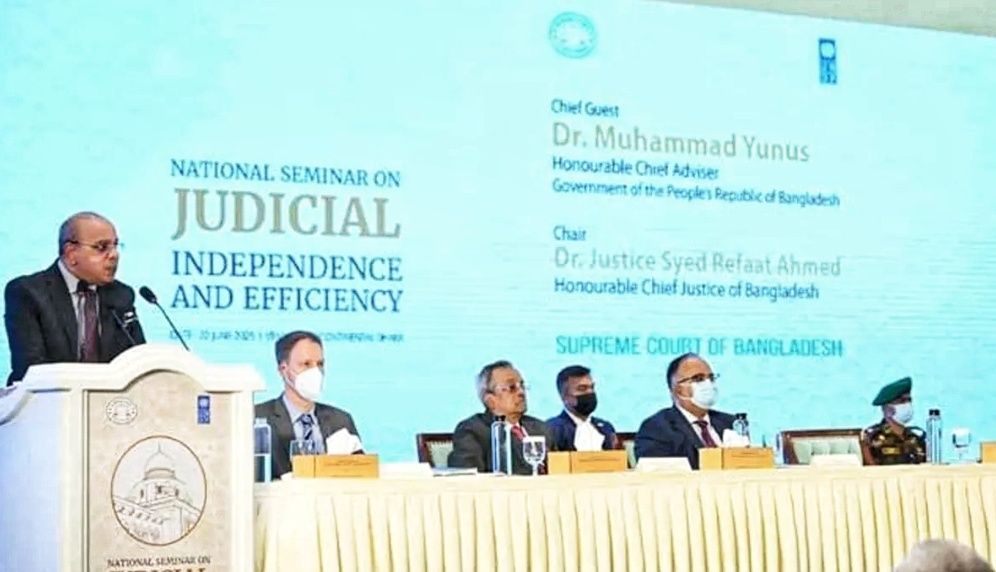 প্রধান বিচারপতি সৈয়দ রেফাত আহমেদ বলেছেন, ‘আমি গভীর তাগিদ নিয়ে আবারও পুনরাবৃত্তি করছি যে, বিচার বিভাগের জন্য একটি আলাদা সচিবালয় প্রতিষ্ঠা এখন সময়ের দাবি। এটি শুধু প্রশাসনিক স্বায়ত্তশাসনের জন্যই প্রয়োজন নয়; বরং কাঠামোগত ভিত্তি নিশ্চিত করার জন্য অপরিহার্য। যার ওপর সব ধরনের সংস্কার নির্ভর করে। ন্যায়বিচার কখনো ধার করা অবকাঠামো বা প্রেরিত কর্তৃত্বের ওপর ভর করে এগিয়ে যেতে পারে না; এর নিজস্ব প্রাতিষ্ঠানিক ভিত্তি থাকতে হবে।রোববার (২২ জুন) সন্ধ্যায় বিচার বিভাগীয় স্বাধীনতা ও দক্ষতা শীর্ষক জাতীয় সেমিনারে সভাপতির বক্তব্যে প্রধান বিচারপতি এ কথা বলেন। দেশের বিচার বিভাগ একটি পূর্ণাঙ্গ কার্যকর সাংবিধানিক অঙ্গ হিসেবে আজ রাষ্ট্রে তার দায়িত্ব পালন করছে বলেও উল্লেখ করেন তিনি। রাজধানীর হোটেল ইন্টারকন্টিনেন্টালে এই সেমিনার অনুষ্ঠিত হয়।প্রধান বিচারপতি বলেন, গত ২১ সেপ্টেম্বর আমি যে ‘বিচার বিভাগীয় সংস্কার রোডম্যাপ’ উপস্থাপন করি, সেটি কেবল ঘোষণাপত্র ছিল নয়—বরং সেটি ছিল বিচার বিভাগের স্বাধীনতা, জবাবদিহি ও জনগণের সেবার প্রাতিষ্ঠানিক রূপান্তরের এক স্পষ্ট প্রতিশ্রুতি। যে রোডম্যাপের কেন্দ্রে রয়েছে ‘সুপ্রিম কোর্ট সচিবালয়’ গঠনের প্রস্তাব, যাতে বিচার বিভাগের প্রশাসনিক ও আর্থিক স্বায়ত্তশাসন নিশ্চিত হয়। পাশাপাশি ছিল বদলি ও পদায়ন নিয়ে রাজনীতি-বিমুক্ত নির্দেশনা এবং দেওয়ানি ও ফৌজদারি আদালত পৃথকীকরণ প্রস্তাব, যা বিচারিক স্বচ্ছতা ও দক্ষতা বৃদ্ধি করবে।প্রধান বিচারপতি ড. সৈয়দ রেফাত আহমেদ আরও বলেন, ‘অবকাঠামোগত সীমাবদ্ধতা থাকা সত্ত্বেও ৩৬টি জেলায় গত ১০ মাসে নতুন মামলার চেয়ে মামলা নিষ্পত্তির হার ছিল বেশি। সেখানে বিচারকরা দেখিয়েছেন যে, সংস্কার ভবিষ্যতের প্রতিশ্রুতি নয়, বরং বর্তমানের বাস্তবতা।’সুপ্রিম জুডিশিয়াল কাউন্সিল পুনঃপ্রতিষ্ঠা বিচারিক শৃঙ্খলার রক্ষক হিসেবে কাজ করছে এবং সুপ্রিম জুডিশিয়াল অ্যাপয়েন্টমেন্ট কাউন্সিল গঠনের ফলে উচ্চ আদালতে বিচারক নিয়োগ যোগ্যতা, স্বচ্ছতা ও নৈতিকতার ভিত্তিতে হচ্ছে উল্লেখ করে প্রধান বিচারপতি বলেন, ‘আমার দৃঢ় বিশ্বাস, সুপ্রিম জুডিশিয়াল কাউন্সিল ও সুপ্রিম জুডিশিয়াল অ্যাপয়েন্টমেন্ট কাউন্সিল এখন বিচার বিভাগের স্বাধীনতার যুগল স্তম্ভ।সেমিনারের এই একপর্যায়ে বিচার বিভাগ সংস্কারে প্রধান বিচারপতি ঘোষিত ‘রোডম্যাপ’ নিয়ে একটি তথ্যচিত্র উপস্থাপন করা হয়।সেমিনারে প্রধান অতিথি হিসেবে বক্তব্য দেন অন্তর্বর্তী সরকারের প্রধান উপদেষ্টা ড. মুহাম্মদ ইউনূস। বিশেষ অতিথি হিসেবে বক্তব্য দেন আইন উপদেষ্টা ড. আসিফ নজরুল, আপিল বিভাগের জ্যেষ্ঠ বিচারপতি মো. আশফাকুল ইসলাম, অ্যাটর্নি জেনারেল মো. আসাদু